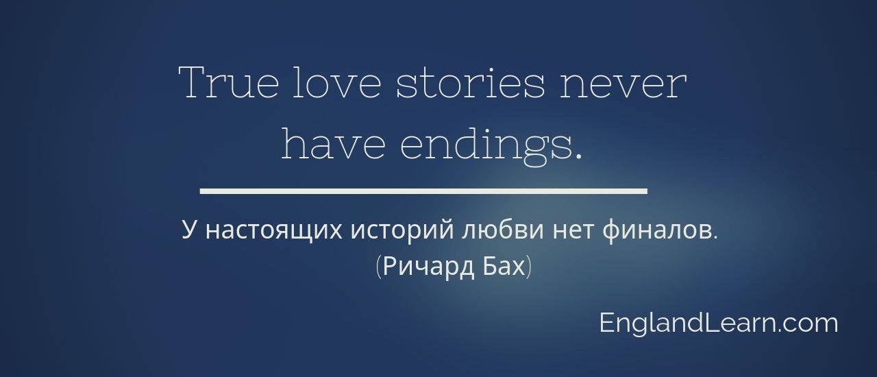 - “True love stories never have endings.” — «У настоящих историй любви нет финалов». (Ричард Бах)