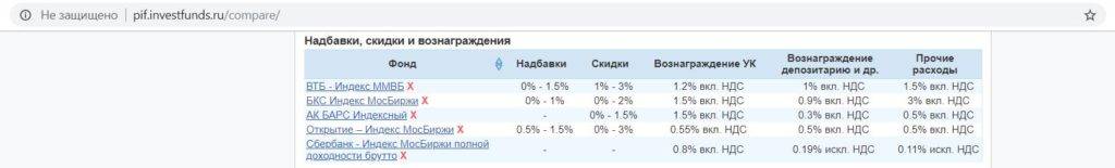 Крайняя правая колонка (выделено красным) — сколько будет для инвестора стоит владение паями фонда с учетом всех комиссий.