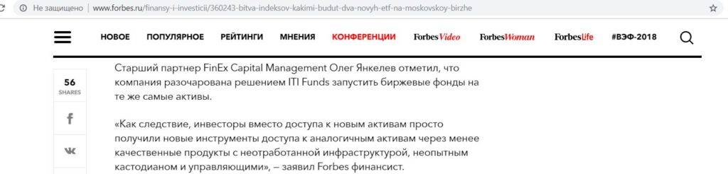Кстати от ITI Funds представители FinEx тоже не в восторге, по их мнению, инфраструктура у этих фондов не особо качественная, а управляющий неопытен. На сайте FinEx можно посмотреть сравнительную табличку с ключевыми различиями данных компаний.
