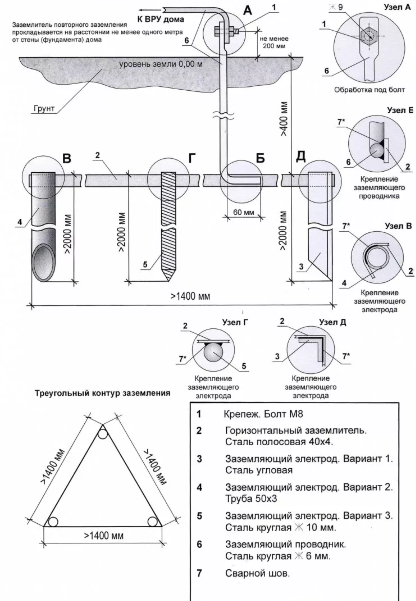 Схематично схему организации контура заземления в частном доме можно представить так: