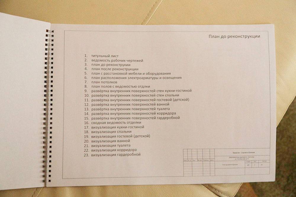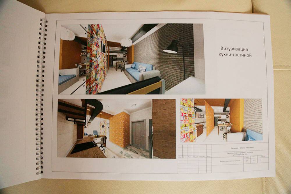 Обычно проект выдают заказчику в виде альбома. Там не только нарисовано, как будет выглядеть помещение после ремонта, но и приведены технические расчеты. Например, сколько потребуется плитки для ванной, краски или обоев для стен, где будет проложена электропроводка, где выведены розетки и так далее. Владелец квартиры видит будущий результат, а строители понимают, что им делать.