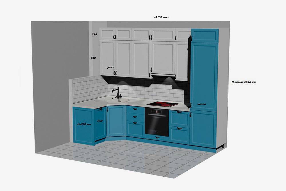 В развертку стен на кухне мы включили шкафы, полки, фартук из плитки, встроенную технику и светильники. Перед тем как заказывать кухню в салоне, переписали все предметы, которые будут храниться в шкафах: посуду, столовые приборы, запас продуктов, специи и так далее. Стало понятно, сколько шкафов и ящиков нам нужно.