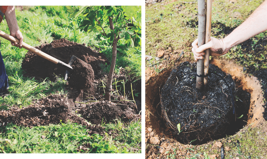 Ðомни, ÑÑо пÑи поÑадке деÑева нелÑÐ·Ñ ÑнимаÑÑ Ð¼ÐµÑÐºÐ¾Ð²Ð¸Ð½Ñ Ð¸ меÑаллиÑеÑкÑÑ ÑеÑкÑ, а Ñакже допÑÑкаÑÑ ÑаÑÑÑеÑÐºÐ¸Ð²Ð°Ð½Ð¸Ñ Ð·ÐµÐ¼Ð»Ñного кома и Ð¿Ð¾Ð¿Ð°Ð´Ð°Ð½Ð¸Ñ ÐºÐ¸ÑлоÑода внÑÑÑÑ. Яма не должна бÑÑÑ ÑлиÑком болÑÑой â лиÑÑ Ð² 2â3 Ñаза болÑÑе коÑневого кома. УбедиÑÑ, ÑÑо коÑни помеÑÑилиÑÑ Ð¿Ð¾Ð»Ð½Ð¾ÑÑÑÑ, ÑолÑко Ñогда можеÑÑ Ð½Ð°ÑаÑÑ Ð¸Ñ Ð·Ð°ÐºÐ°Ð¿ÑваÑÑ, пеÑиодиÑеÑки ÑÑÑамбовÑÐ²Ð°Ñ Ð¿Ð¾ÑвÑ.