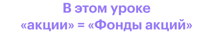 А как вы помните из урока про акции, вкладываться в отдельные компании — очень рискованное дело, особенно для новичка. Поэтому в этом уроке при упоминании акций мы будем иметь в виду фонды акций.