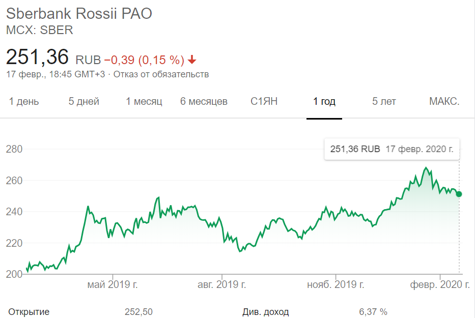 Сбербанк. 2015 год. Акция стоит 60 рублей. Сбер платит довольно скромные дивы. Всего 45 копеек. Див. доходность меньше процента.