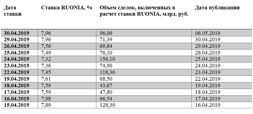 | RUONIA (ON) | взвешенная рублевая депозитная ставка «овернайт» активных банков с высоким кредитным рейтингом | Национальная финансовая ассоциация |