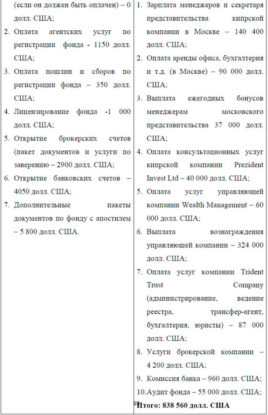 Основные расходы на открытие и содержание хедж-фонда в офшорной юрисдикции: