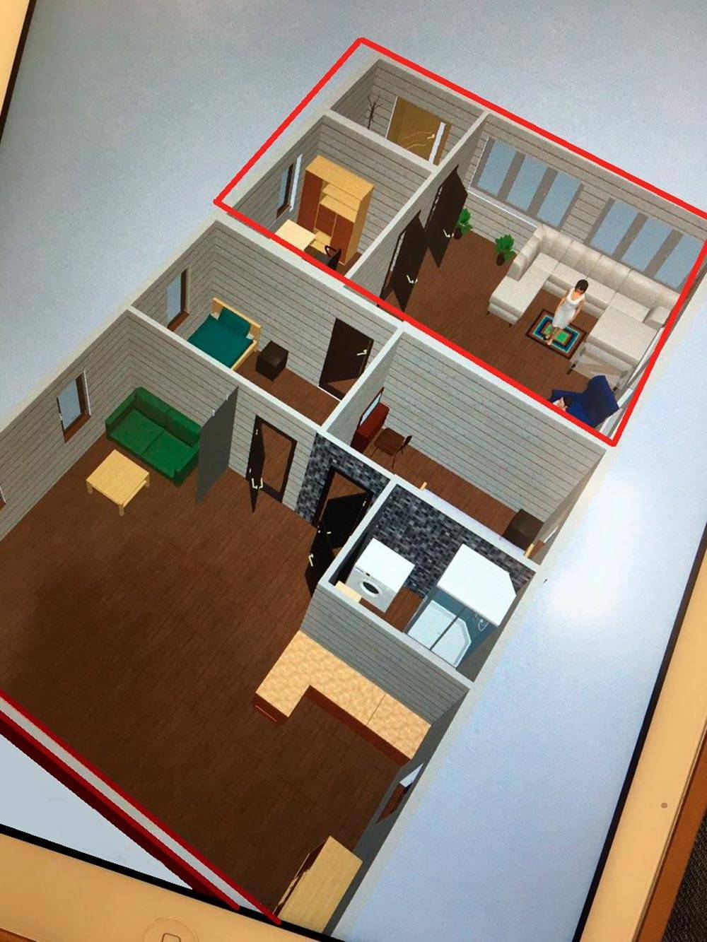 Красным выделена часть, которую мы планируем достроить. Там будет зимний вход, гардеробная и гостиная с панорамными окнами. Кухня-гостиная станет столовой с большим столом и стульями. Наша спальня-гардеробная будет проходной комнатой с уютным местом для сна