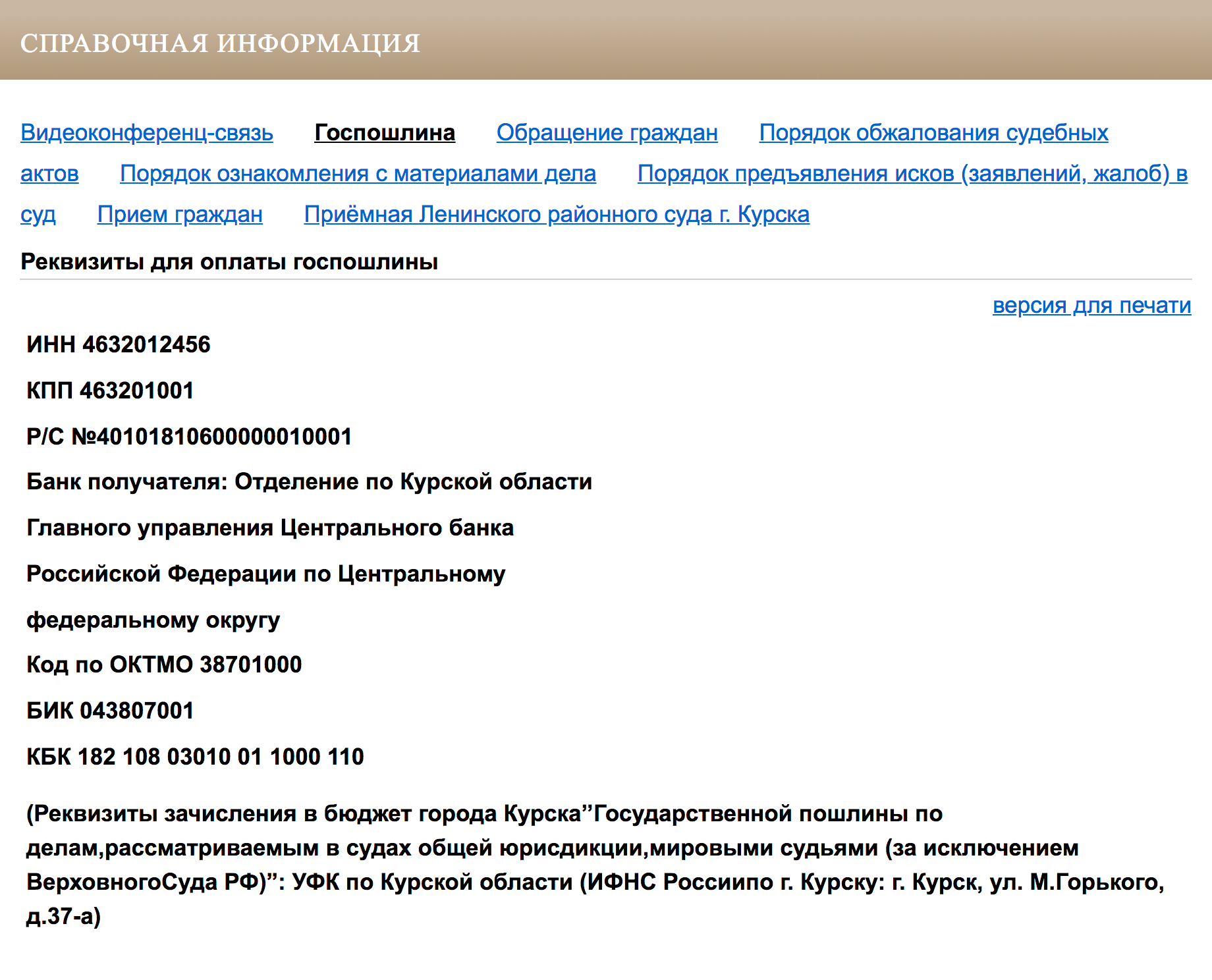 Оплатить госпошлину. Чтобы оплатить пошлину, нужно сначала узнать реквизиты. Это можно сделать на сайте суда. Там же можно скачать квитанцию или платежное получение.
