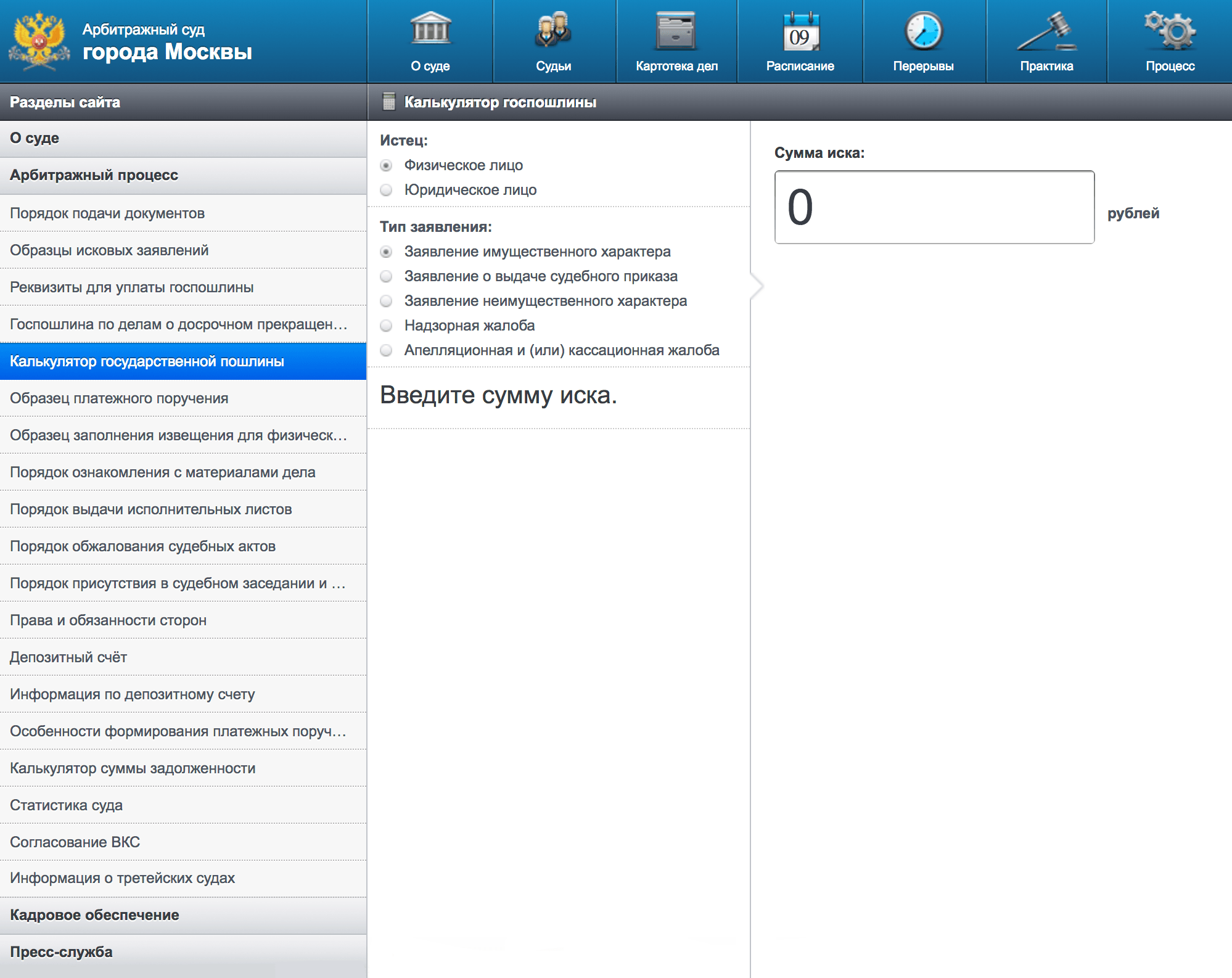 Проще всего сделать расчет на специальном калькуляторе на сайте суда.