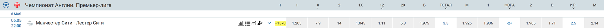 Линия на матч английской Премьер-лиги. В ней 10 основных и 1570 дополнительных исходов