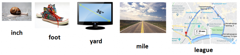 Ну и чтобы до конца разобраться с единицами длины, вот вам картинка, где они идут по возрастанию от дюйма до лиги. Это добавит наглядности.