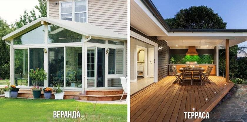 Веранда, как правило, это остекленное помещение, имеющее кровлю и стены, терраса – открытый навес, сооруженный непосредственно на земле.