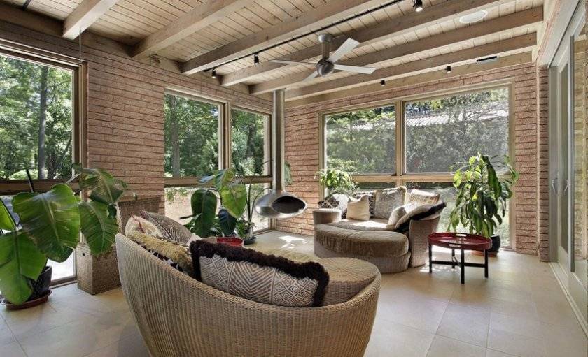 Веранда закрытого типа предназначена для круглогодичного использования. Окна в таком помещении застеклены, что позволяет находиться в нём в холодную пору. Некоторые хозяева утепляют стены, оснащают эту пристройку отоплением или камином, чтобы чувствовать себя зимой максимально комфортно. Летом в веранде можно открыть окна для доступа свежего воздуха.