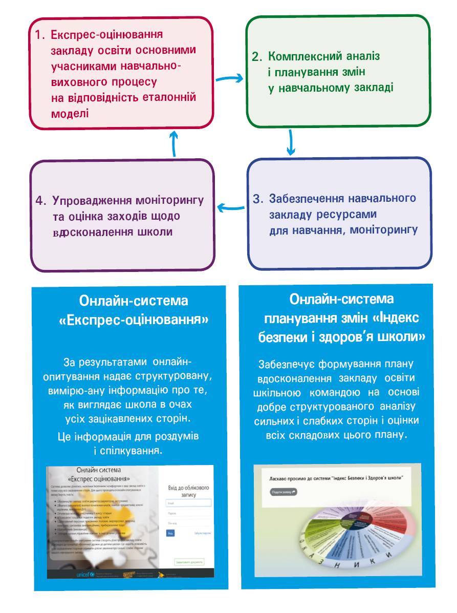 Створення безпечної і дружньої до дитини школи є безперервним процесом удосконалення навчального закладу, який базується на трирівневій системі показників БДДШ.