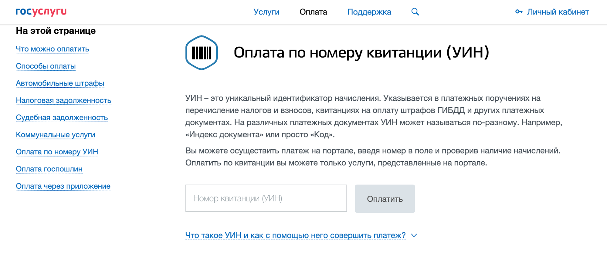 Чтобы оплатить квитанцию по НДФЛ через госуслуги, перейдите на страницу «Оплата» и выберите «Оплата по квитанции»