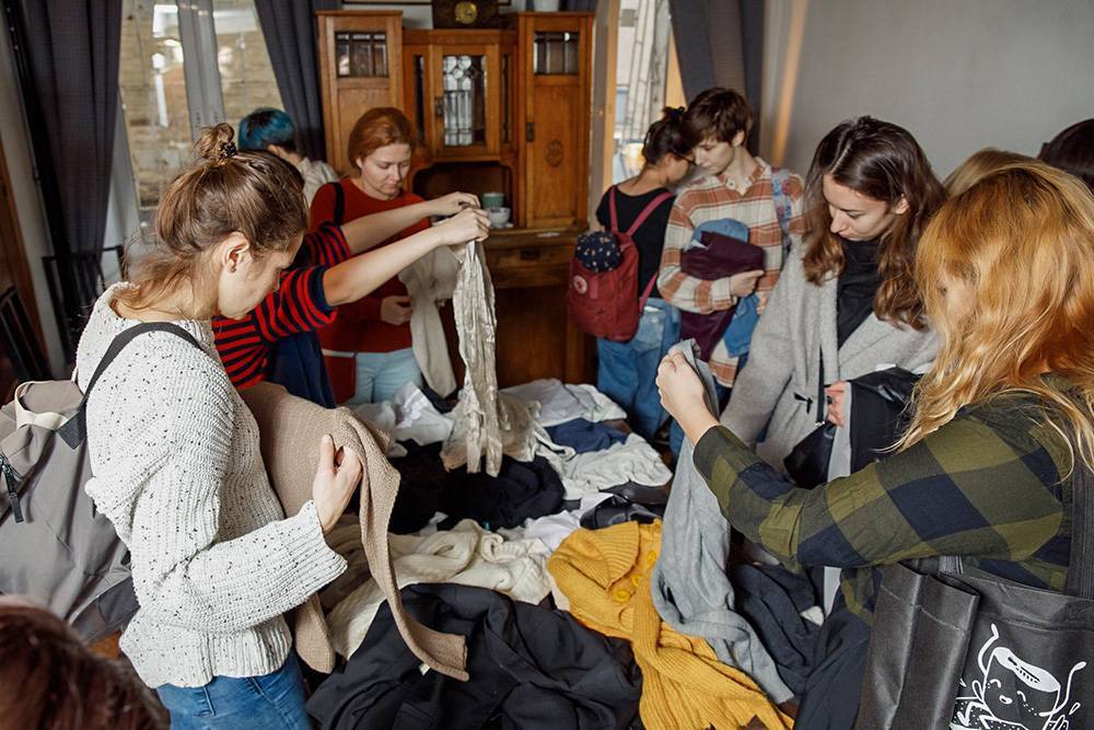 Среди последних — кофейный своп в кафе Introvert, где можно было поделиться пачками зерен, кружками, термосами, кофейным мерчем или тематическими книгами и журналами; косметический своп в «Прожекторе», куда приносили духи, шампуни, тени и другую косметику, которую можно продезинфицировать; монохромный своп в «Циферблате», где можно было свопить только однотонные вещи — бежевого, черного, серого цвета.