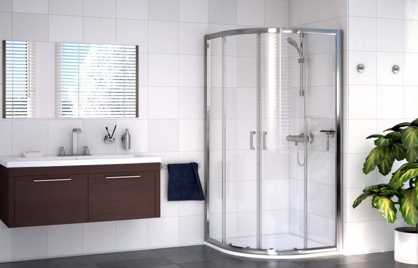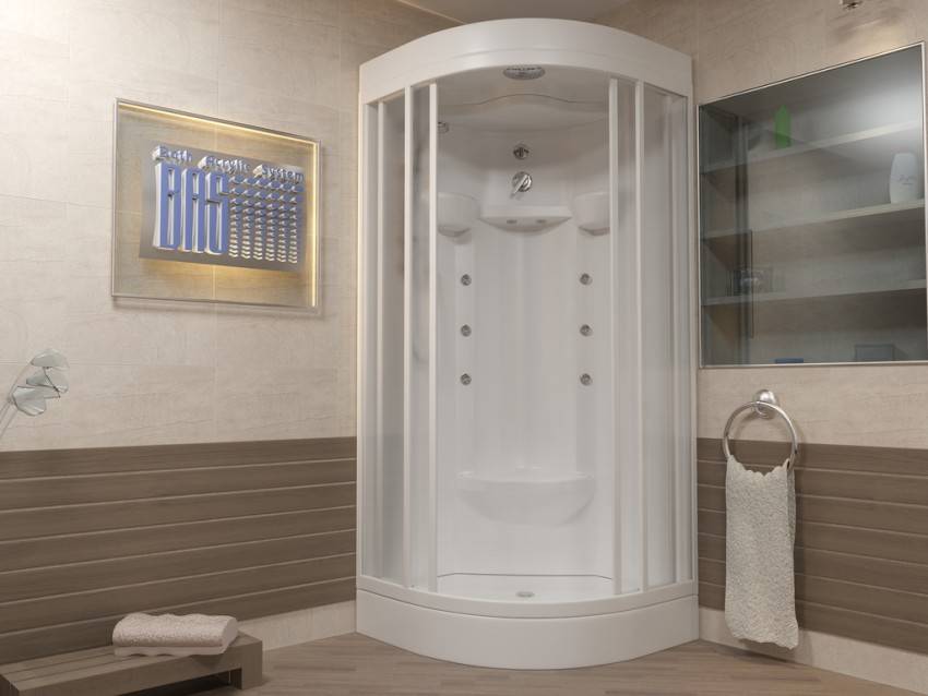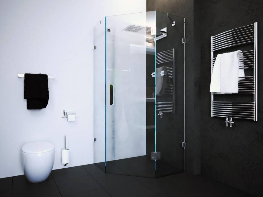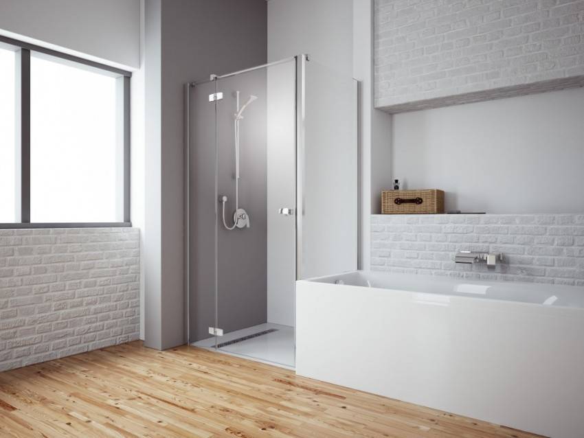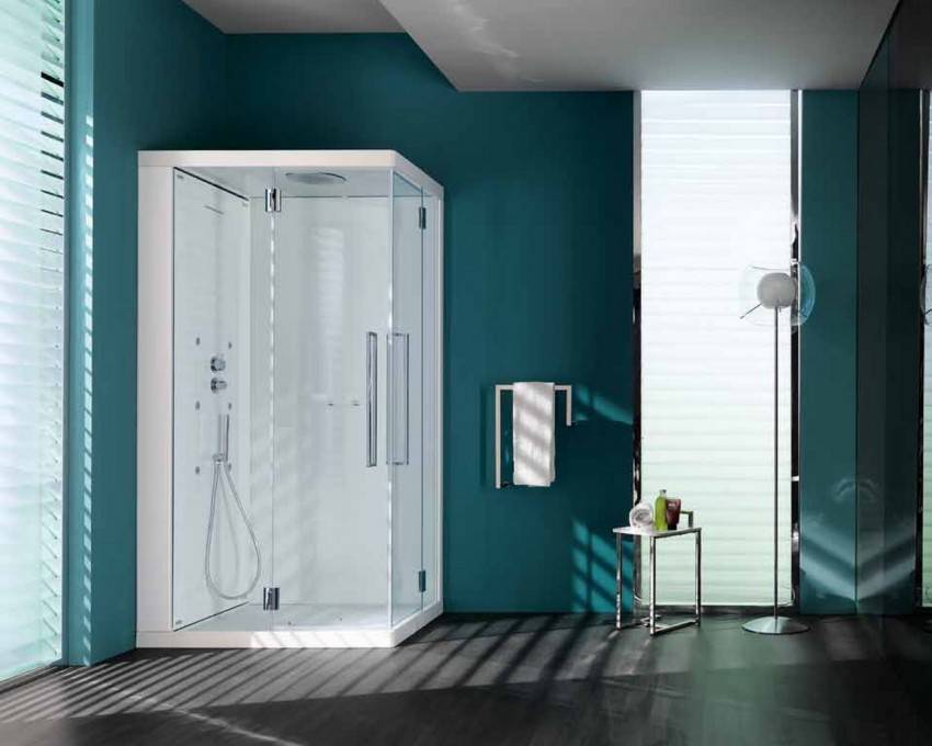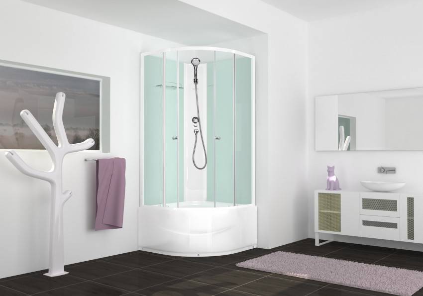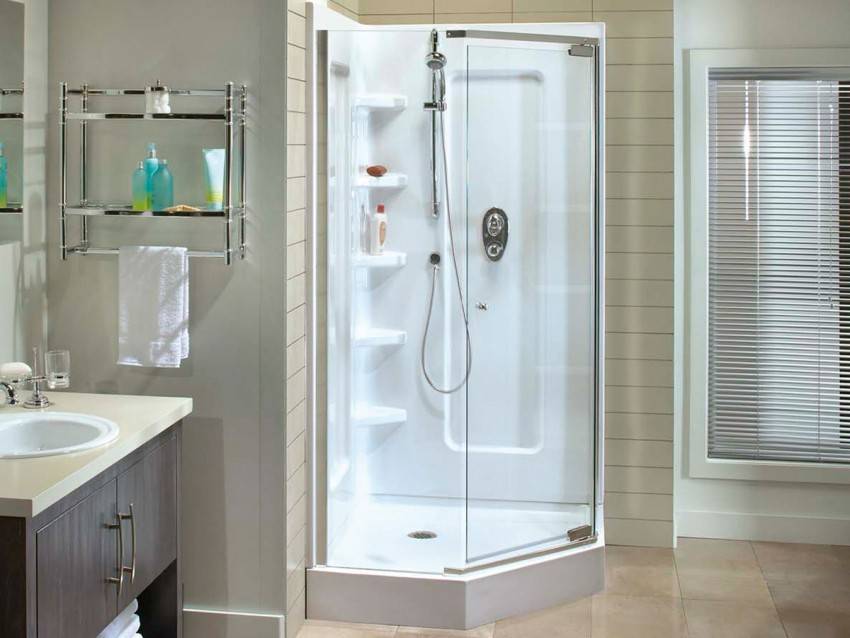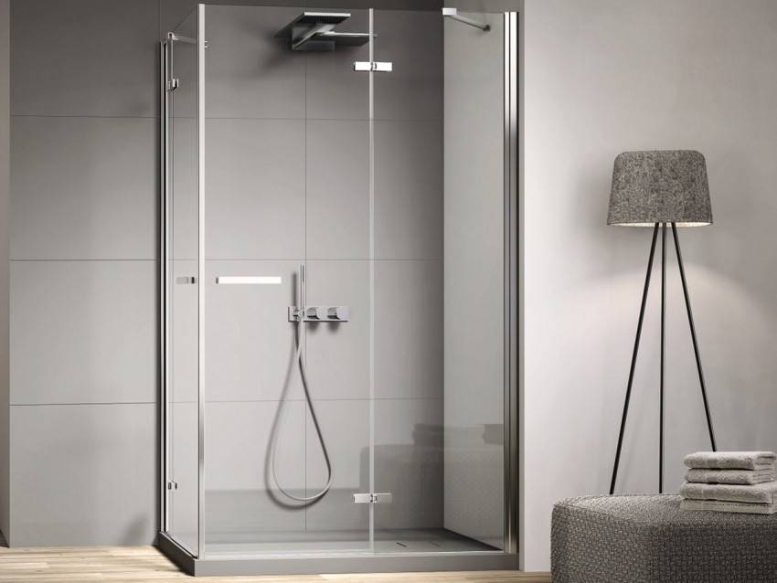 Чтобы сэкономить максимум места, лучше выбирать угловые модели открытого типа. У них отсутствуют боковые панели и верх. Нижняя часть кабины должна быть достаточно глубокой, чтобы предотвратить возможность аварийного затопления. Дверцы лучше всего выбирать прозрачные, раздвижные, без лишних деталей в оформлении.