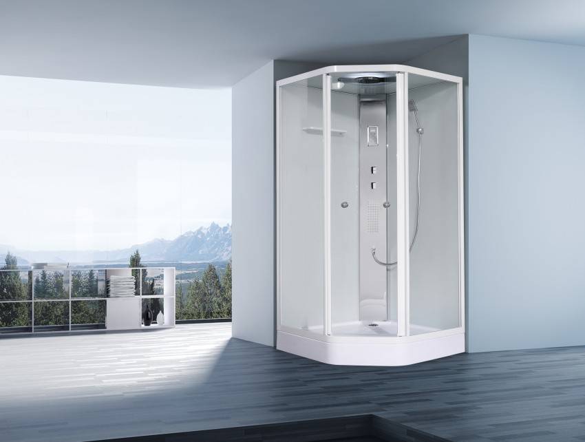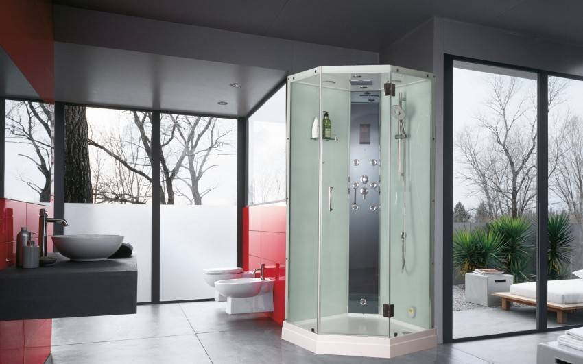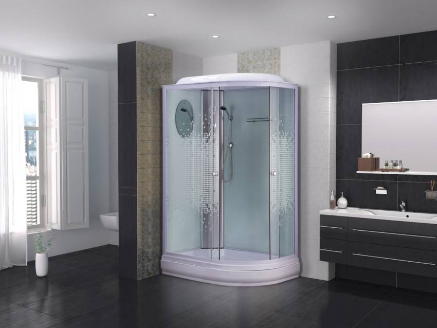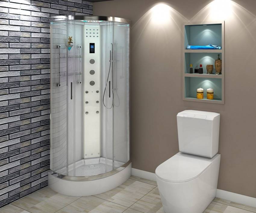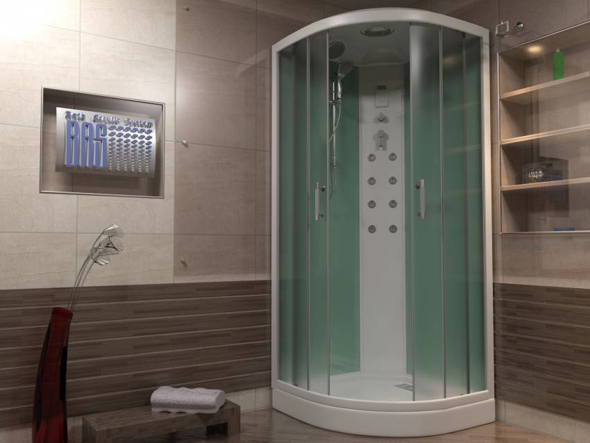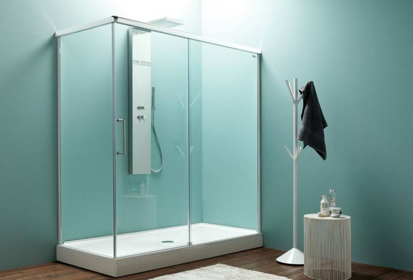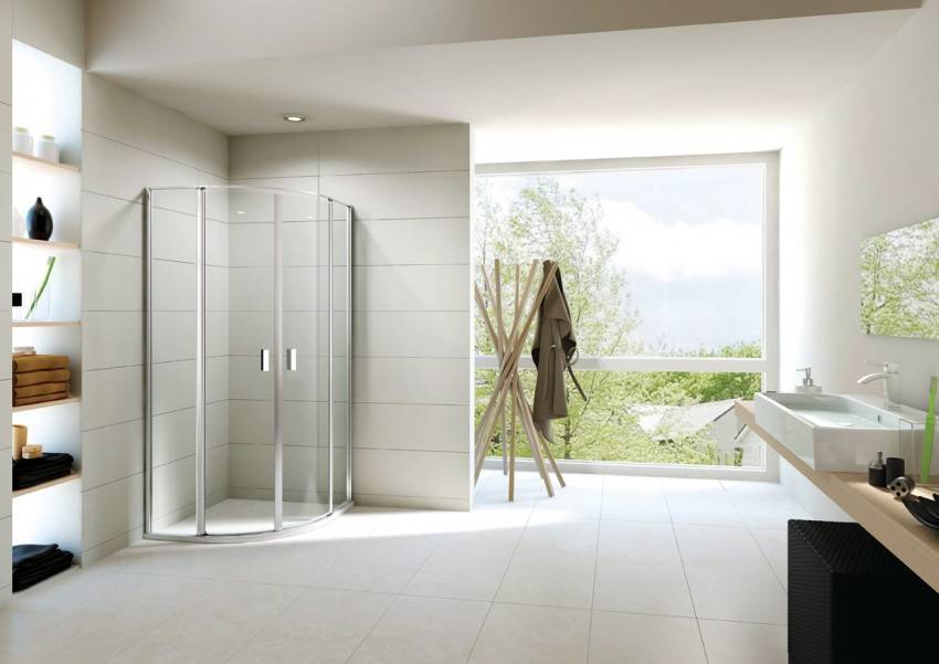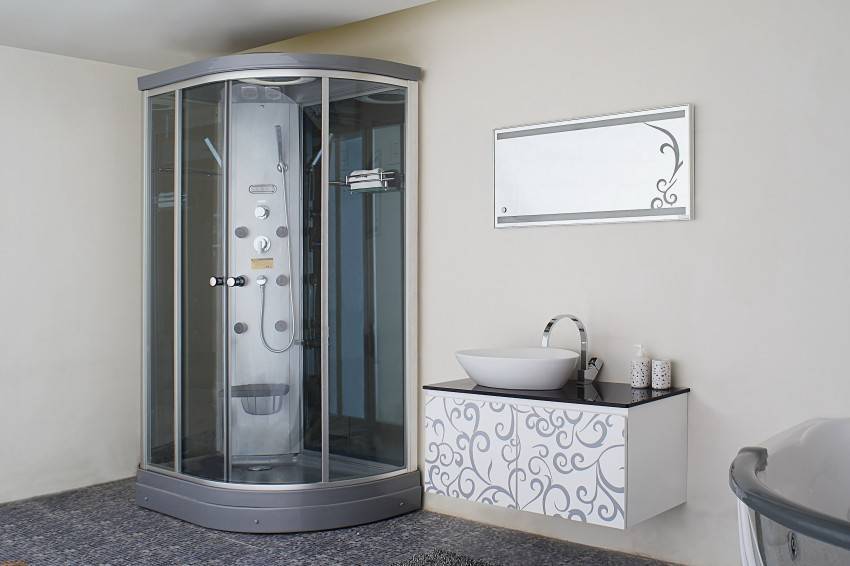 Чтобы сэкономить максимум места, лучше выбирать угловые модели открытого типа. У них отсутствуют боковые панели и верх. Нижняя часть кабины должна быть достаточно глубокой, чтобы предотвратить возможность аварийного затопления. Дверцы лучше всего выбирать прозрачные, раздвижные, без лишних деталей в оформлении.