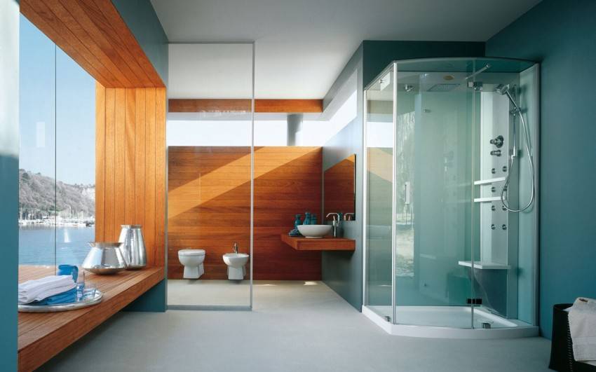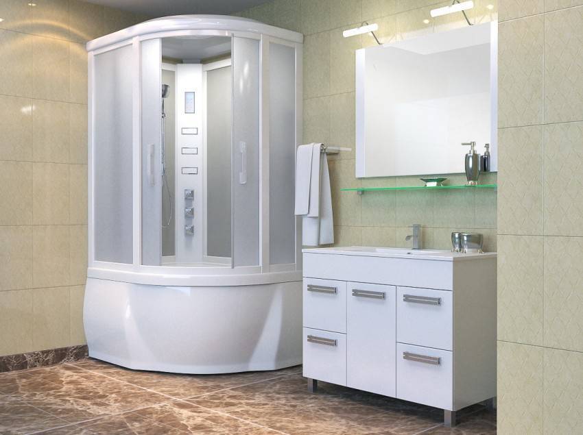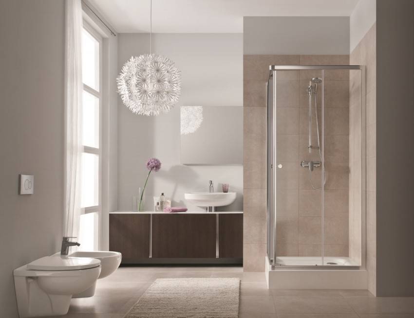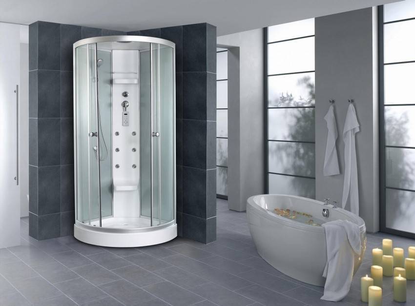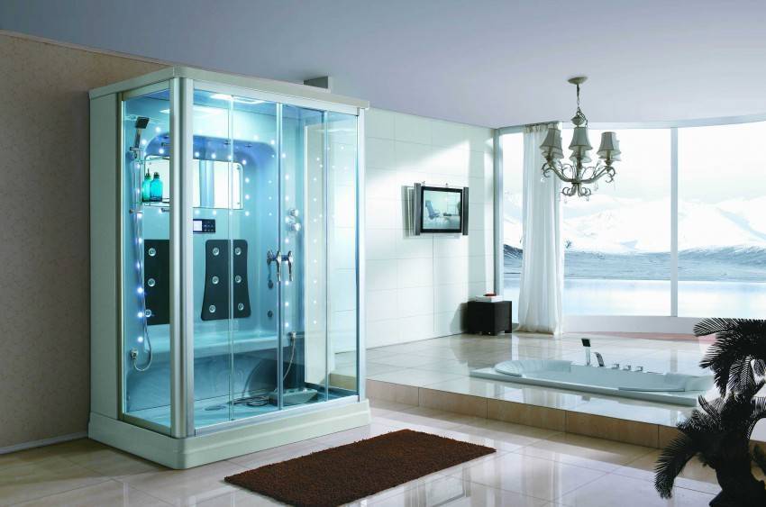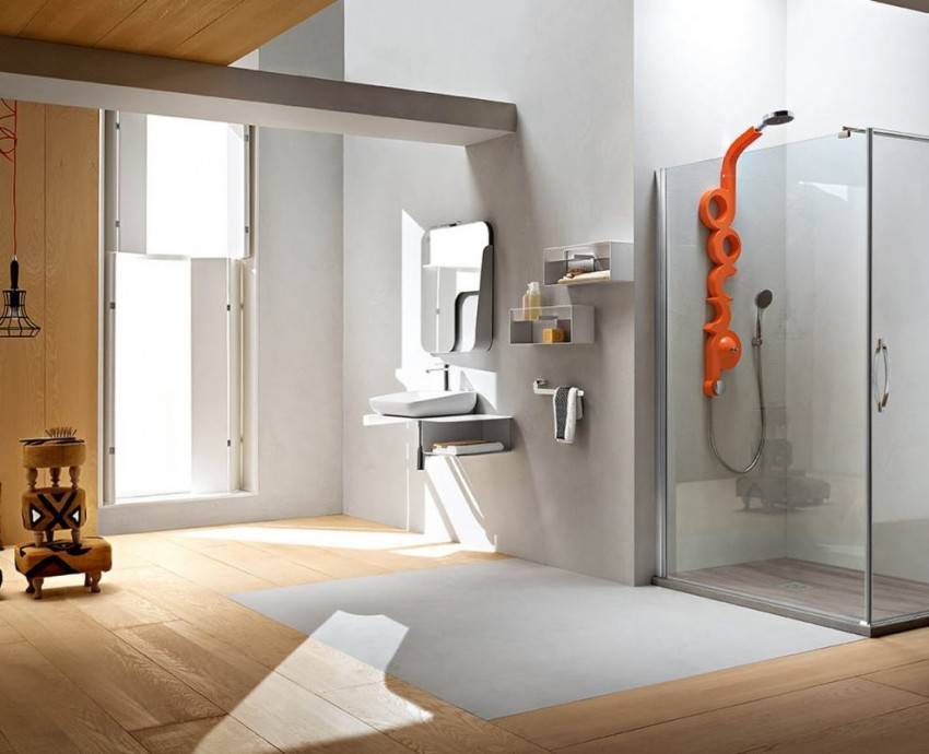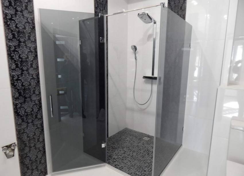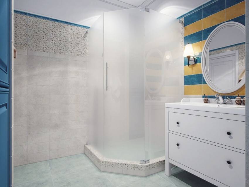 Чтобы сэкономить максимум места, лучше выбирать угловые модели открытого типа. У них отсутствуют боковые панели и верх. Нижняя часть кабины должна быть достаточно глубокой, чтобы предотвратить возможность аварийного затопления. Дверцы лучше всего выбирать прозрачные, раздвижные, без лишних деталей в оформлении.