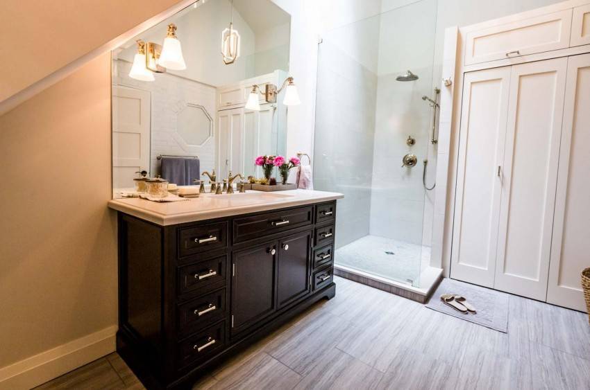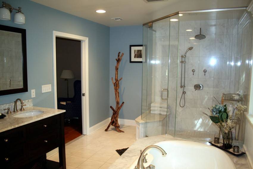 В этом случае довольно глупо в каждом из них устанавливать ванну, даже если кто-то из жителей дома очень любит ее использовать. В этом случае ванну обычно оставляют в ванной, которая чаще всего используется хозяевами дома – она часто имеет вход только с хозяйской спальни.