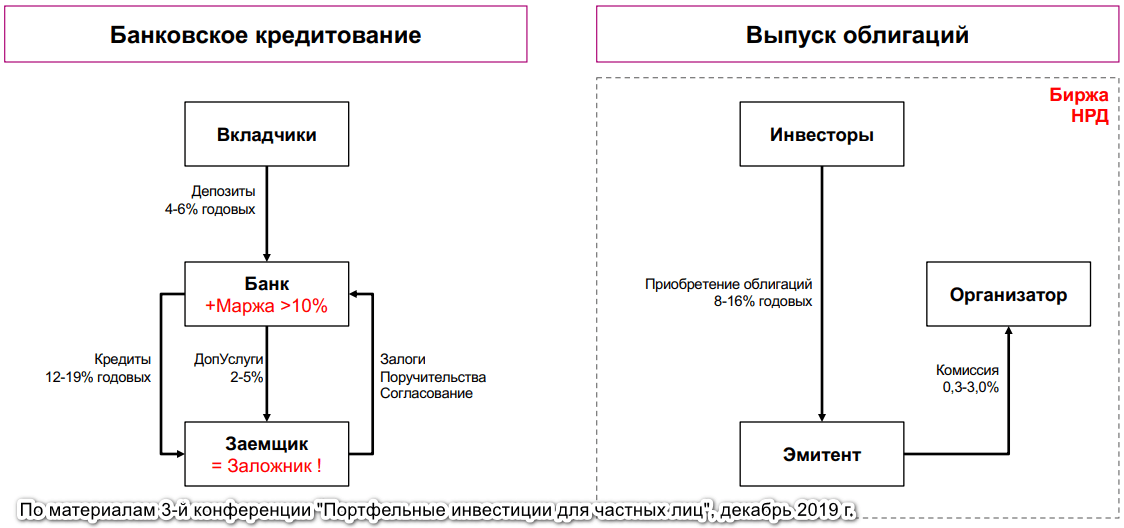 На схеме хорошо видно, почему эмитенты выходят на рынок облигаций.