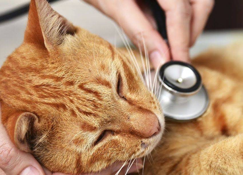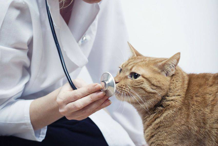 Ветеринар слушает сердце кошки с помощью стетоскопа