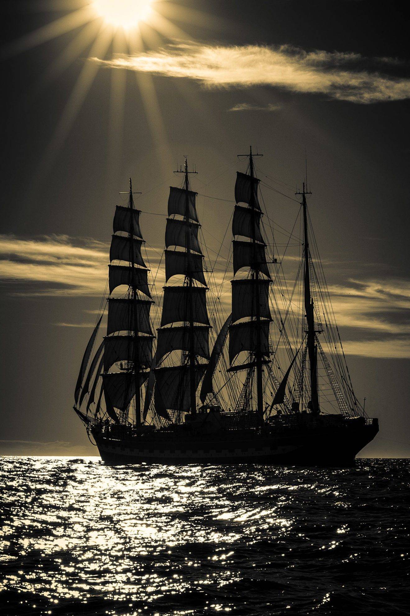 Юрий Масляев // В полном великолепии. Барк «Крузенштерн», Россия. Пигментная печать на барите, паспарту, багет | 100×138 см