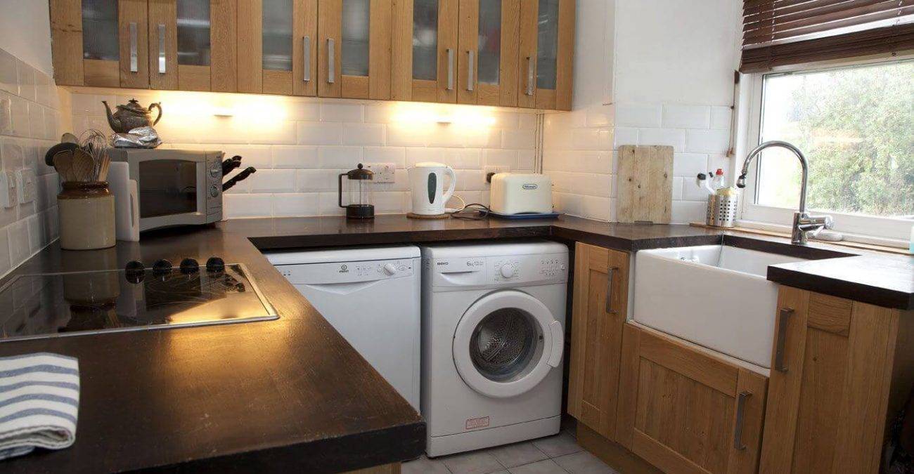 Если ваша стиральная машина размещена на кухне, вы можете одновременно заниматься и мытьем посуды, и стиркой, и приготовлением пищи