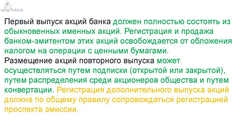 Закон разрешает компании-эмитенту включение дополнительных условий. К примеру, эмитентом может быть указано, что не разрешается покупать больше 30% ценных бумаг в одни руки или не продавать их фирмам, которые не являются российскими резидентами |