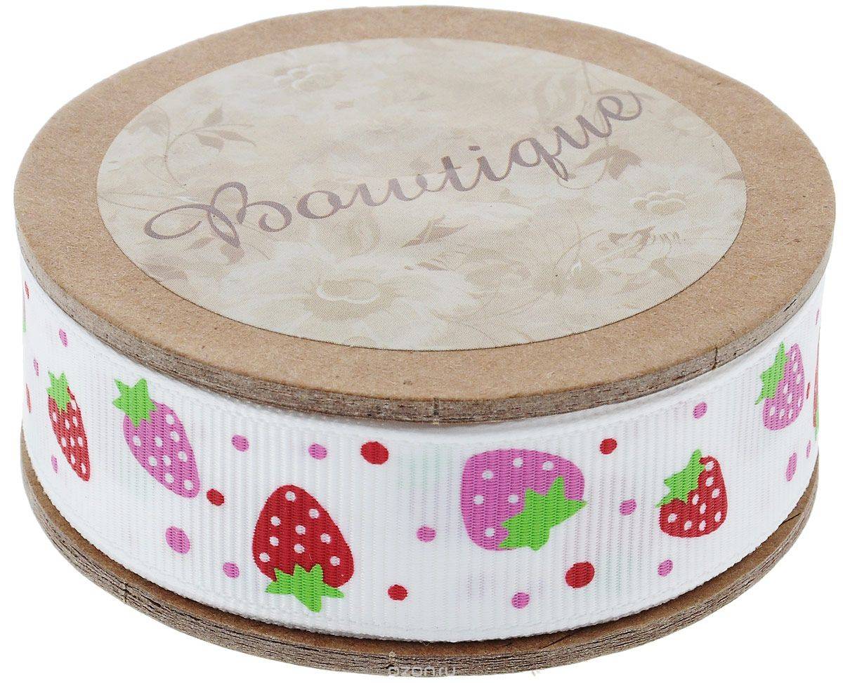 Лента репсовая Hemline «Клубнички», цвет: молочный, красный, розовый, 2 х 500 см