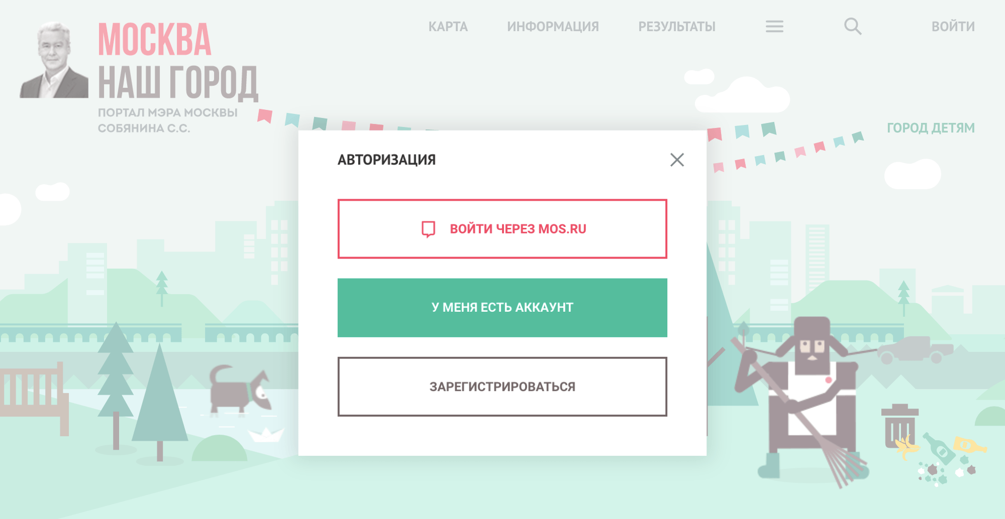Зарегистрируйтесь или войдите через сайт Правительства Москвы, чтобы оставить обращение