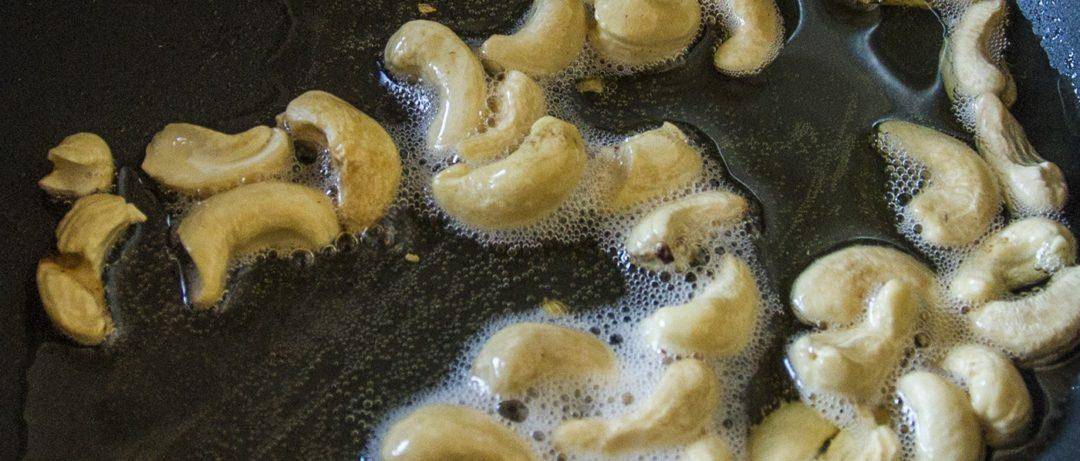 Но при использовании масла учитывайте тот факт, что калорийность кешью возрастает в разы. Поэтому если вы следите за фигурой и переживаете за свою талию, лучше жарить кешью на сухой сковороде без масла.