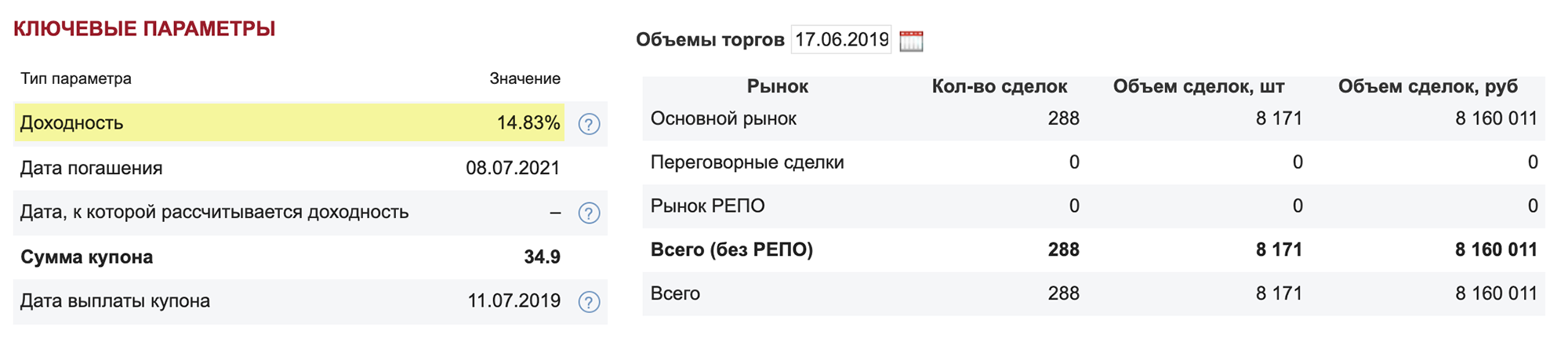 Доходность — хорошо, если выше банковского депозита. Я выбирала доходность выше 8%. Эта информация тоже есть в карточке облигации на сайте Мосбиржи.