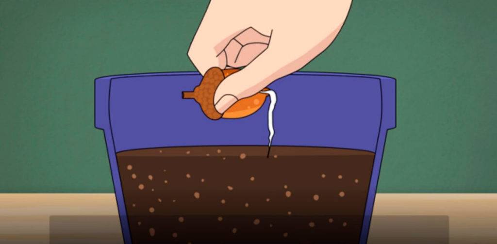 Каждый желудь следует положить в отдельный горшочек с качественным грунтом, не глубоко