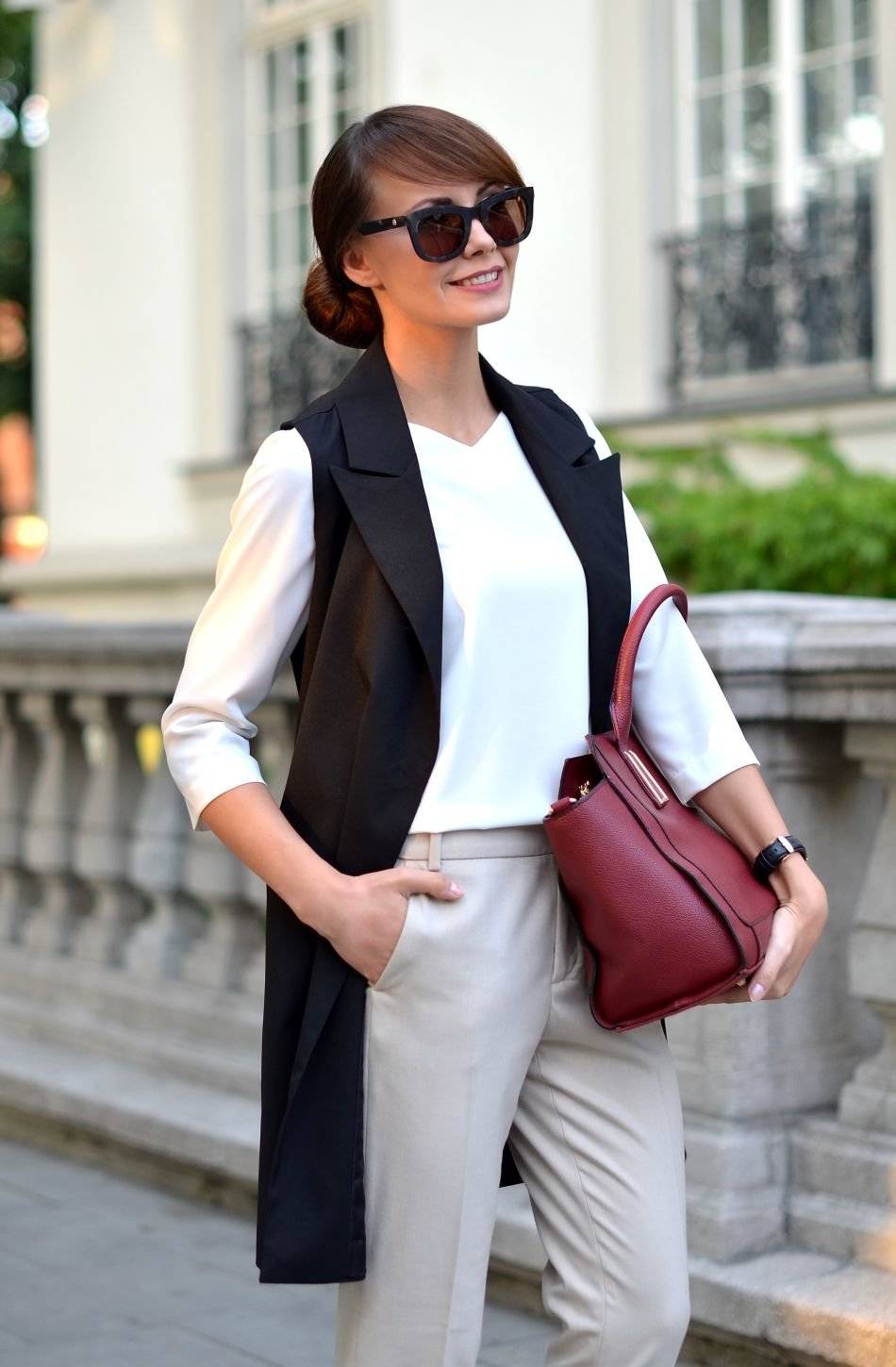 Основные характеристики наряда, в котором присутствует костюмный жилет, — строгость, сексуальность и утонченность. Именно поэтому жилетка может стать частью делового, романтического, вечернего и повседневного образа.